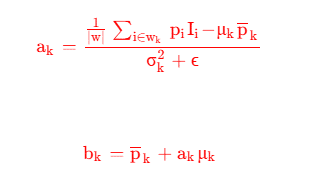 最终结果如上, 为引导图I在窗口内的均值, 下面的 为引导图的方差。